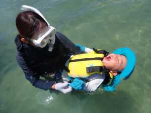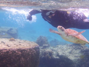 水深1〜3mの足が着く場所で、ウミガメやクマノミ、